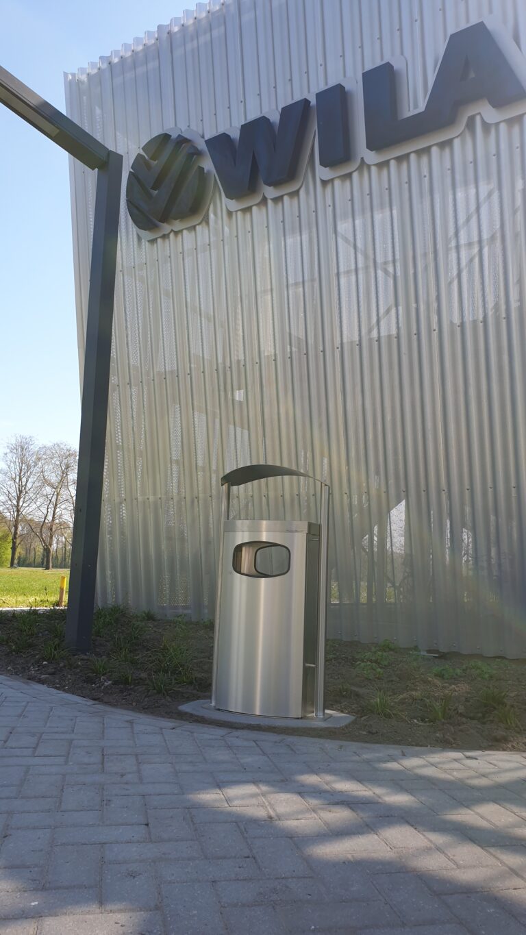 Daarnaast hebben we bij de parkeergarage een RVS prullenbak geplaatst. Een klein detail, maar wel eentje die past bij het gebruik van de locatie: bezoekers kunnen hun sigaretten en klein afval netjes kwijt.